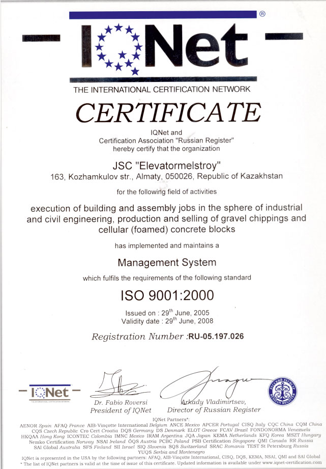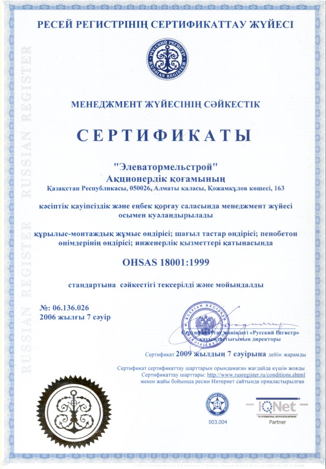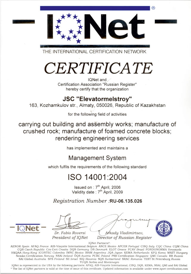 В компании действуют сертифицированные системы менеджмента качества, экологического менеджмента и менеджмента профессиональной безопасности и охраны труда, отвечающие требованиям международных стандартов ИСО 9001:2000, МСО 14001:2004 и OHSAS 18001:1999.